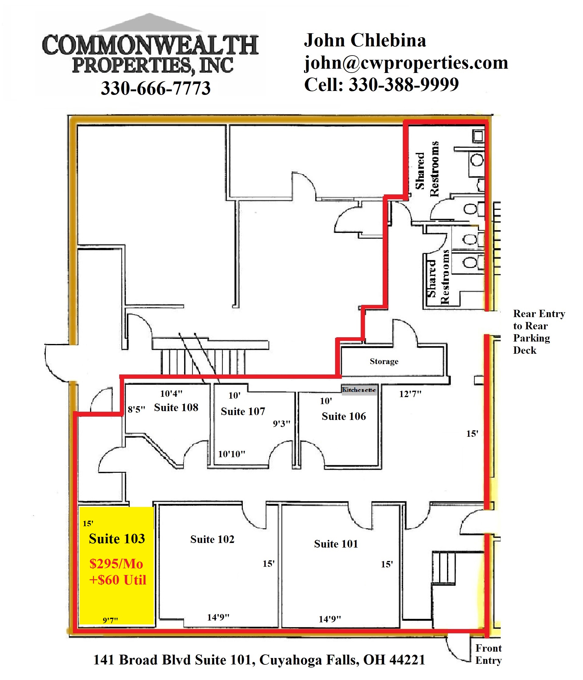 Suite 103: $295/Month + $60/Month for utilities. WiFi available for $35/month